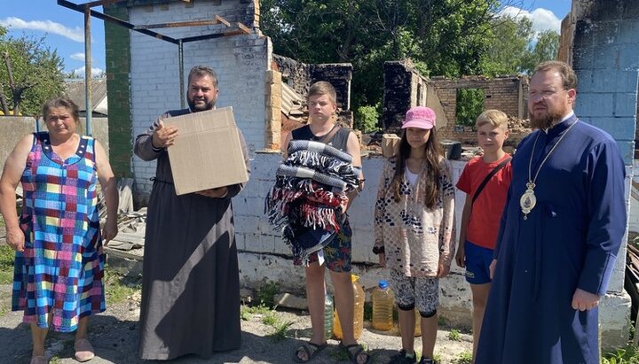 Клирики УПЦ привезли продукты и теплые вещи в пострадавшие от войны села Киевской области. Фото: Telegram-канал Церковь помогает