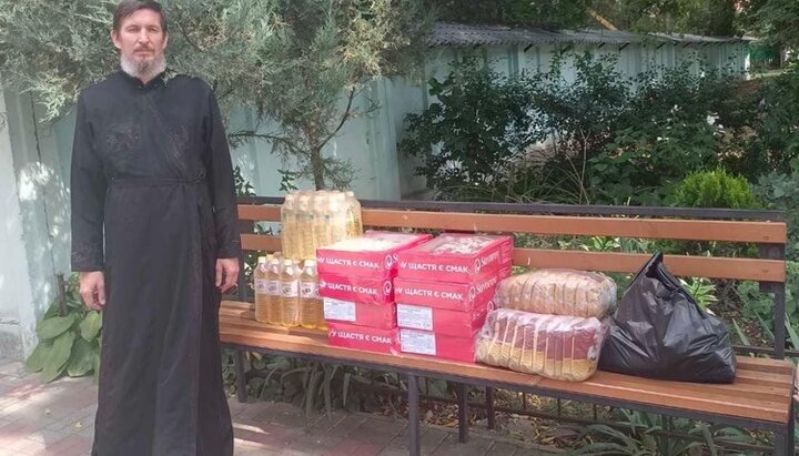 Отец Константин готовит гумпомощь к отправке. Фото: kremen-eparh.org