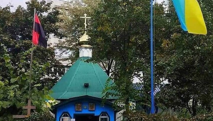 В ПЦУ к кресту перед храмом прикрепили флагшток с флагом ОУН-УПА