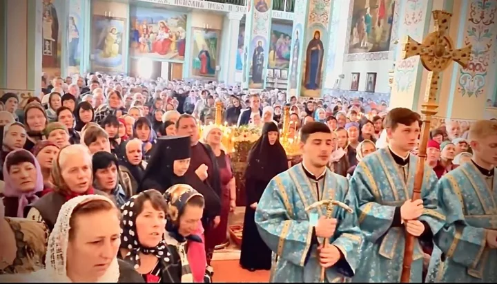 За богослужением молились тысячи верующих паломников, прибывших в этот день в монастырь.