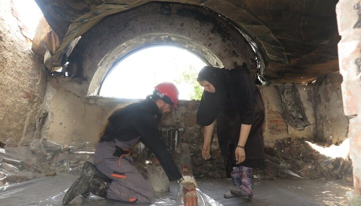 Насельники скита в Адамовке начали ремонт крыши пострадавшего от обстрелов корпуса. Фото: Facebook