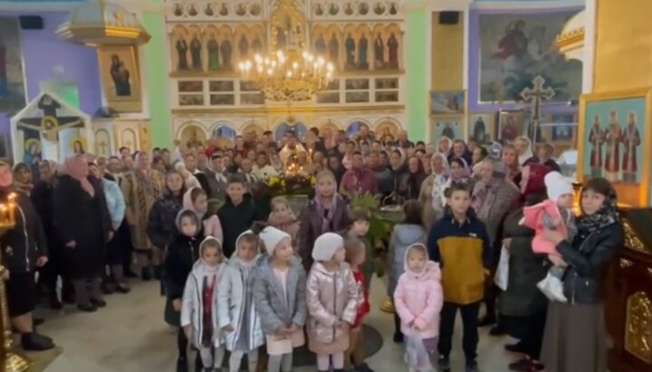 Прихожане храма в Юрковцах подтвердили верность УПЦ. Фото: скриншот видео группы Черновицко-Буковинской епархии в Facebook