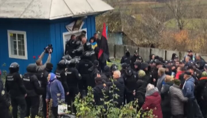 Полиция отбила штурм храма в Рынгаче. Фото: Перший Козацький
