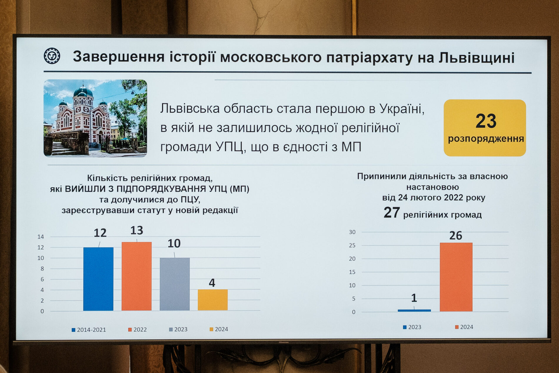Глава департамента культуры, национальностей и религий Львовской ОВА Ирина Гаврилюк рассказала, что в 2024 году в ПЦУ «перешли последние 4 общины УПЦ», а еще 27 «прекратили деятельность по собственному решению». Вы представляете какая свобода? Ходили люди в храмы поколениями, и вдруг – как отрезало, решили «добровольно прекратить».