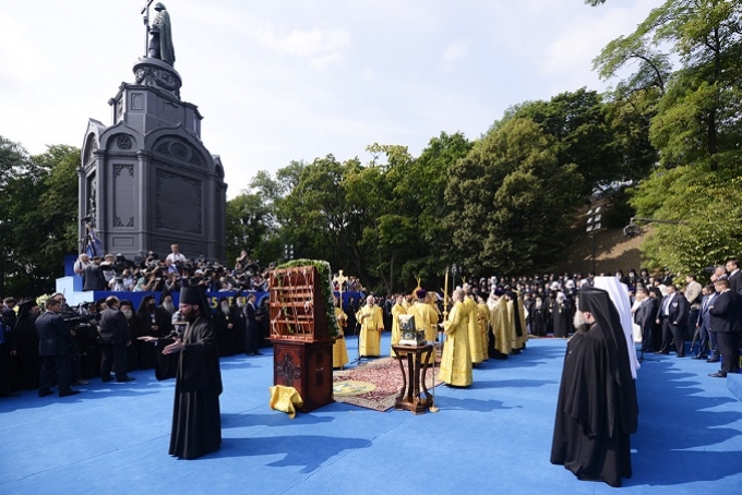 «К сожалению, 1000-летие преставления князя Владимира мы встречаем не в лучшем состоянии, ведь украинское православие разделено, а на востоке нашего государства — война. Князь Владимир был князем единства, он объединил все княжества и принял христианство, и тогда у нас была единая Православная Церковь. То есть завещание князя Владимира состоит в том, чтобы и мы сегодня пытались преодолеть все наши разделения», — подчеркивает протоиерей УПЦ.