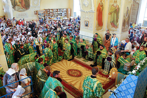 При входе на территорию Богоявленского собора святыни торжественно встречали духовенство Орловской митрополии и многочисленные верующие, казачество, волонтеры молодежного православного движения «Богоявленская семья».