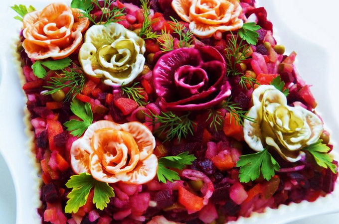 По вкусу в винегрет можно добавить мелко нарезанную соленую сельдь.