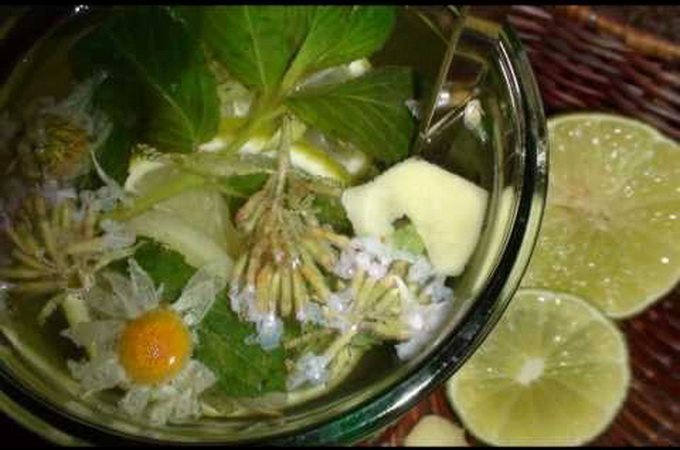 Взять травяной сбор – мята, мелиса, душица, чебрец, морошка, чуть ромашки – и смешать в равных количествах.