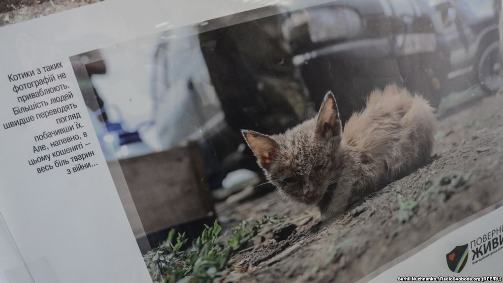 В Киеве волонтеры представили фотовыставку о животных, брошенных в зоне АТО