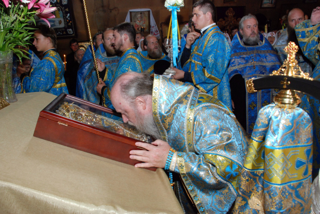 3 июля в 6:00 утра отслужена Божественная литургия. Далее святыню повезут по