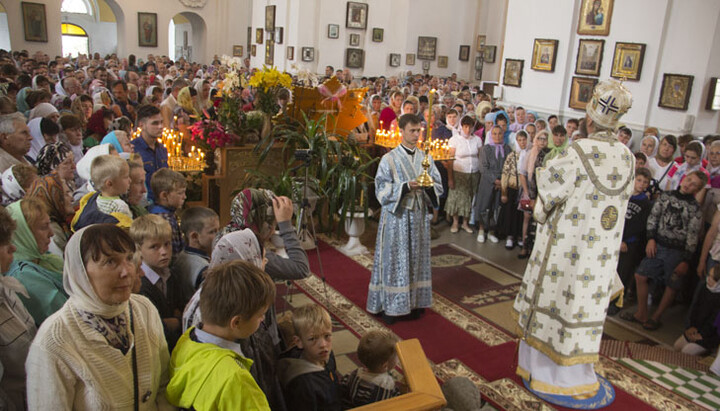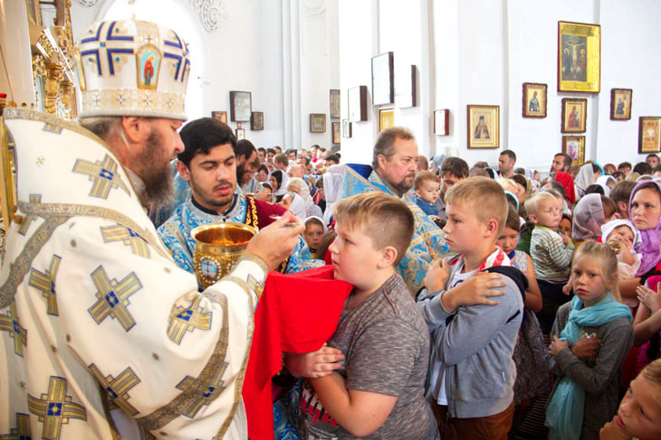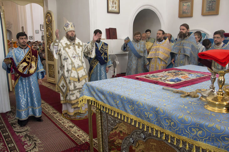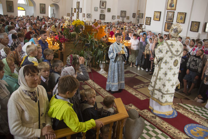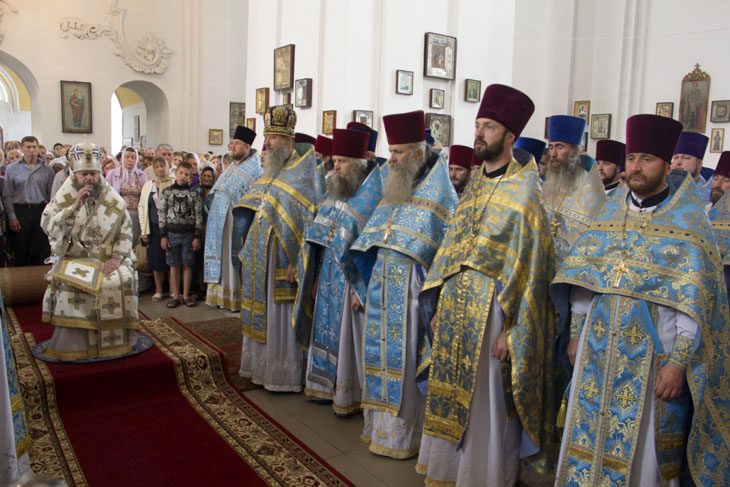 Божественную литургию в Покровском кафедральном соборе Ахтырки в сослужении ста священнослужителей возглавил архипастырь.