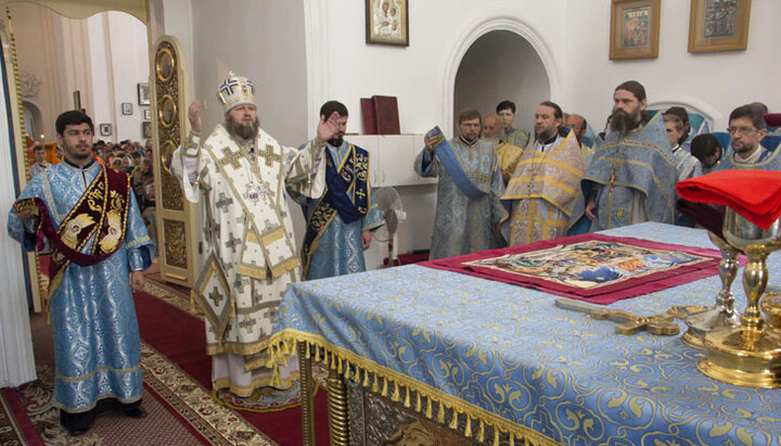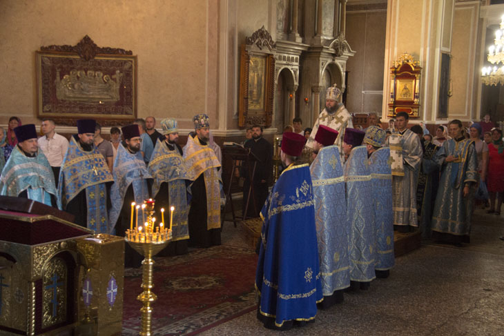 Накануне всенощное бдение перед древним списком Ахтырского образа, переданным Сумской епархии приснопамятным Блаженнейшим Митрополитом Владимиром (Сабоданом), в Спасо-Преображенском кафедральном соборе Сум возглавил архиепископ Сумский и Ахтырский Евлогий.