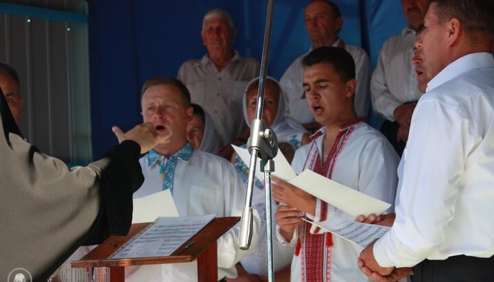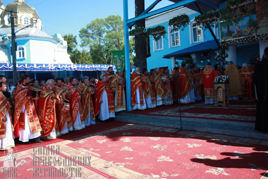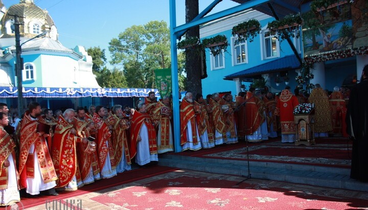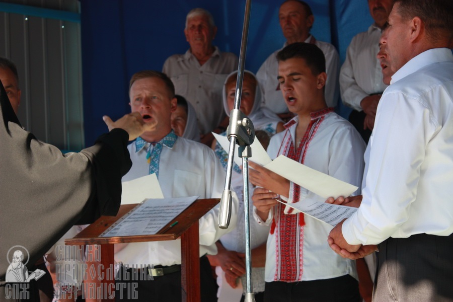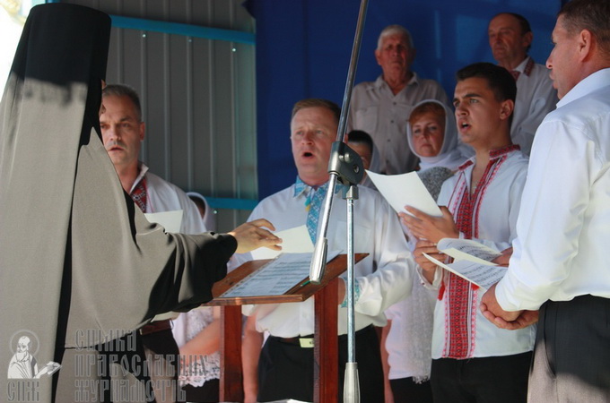 Литургию под открытым небом возглавил митрополит Ровенский и Острожский Варфоломей в сослужении прибывших владык: Елиферия, архиепископа Чинкенского и Тарасского (Казахстан), Гурия, Вениамина, епископа Хотинского, Александра, архиепископа Городницкого.