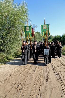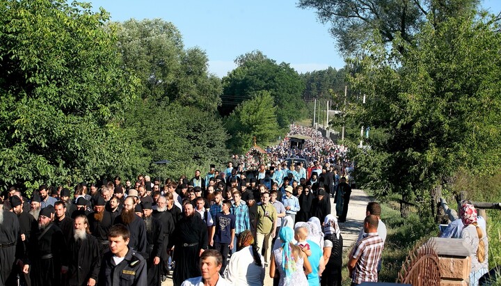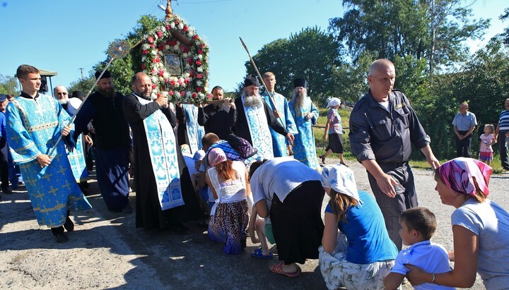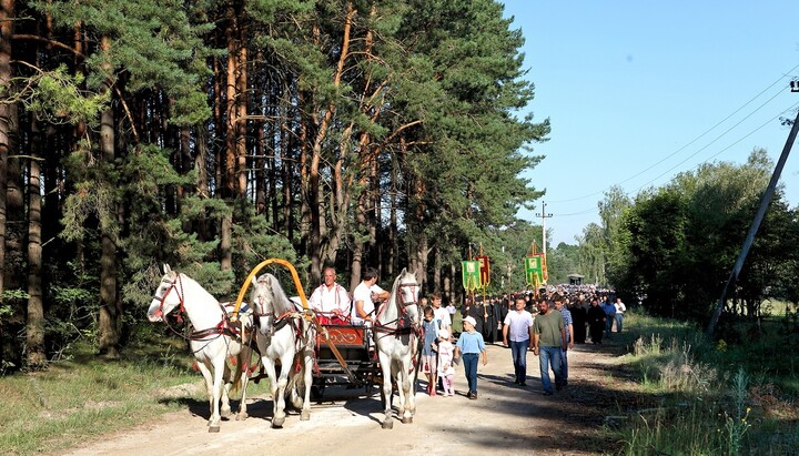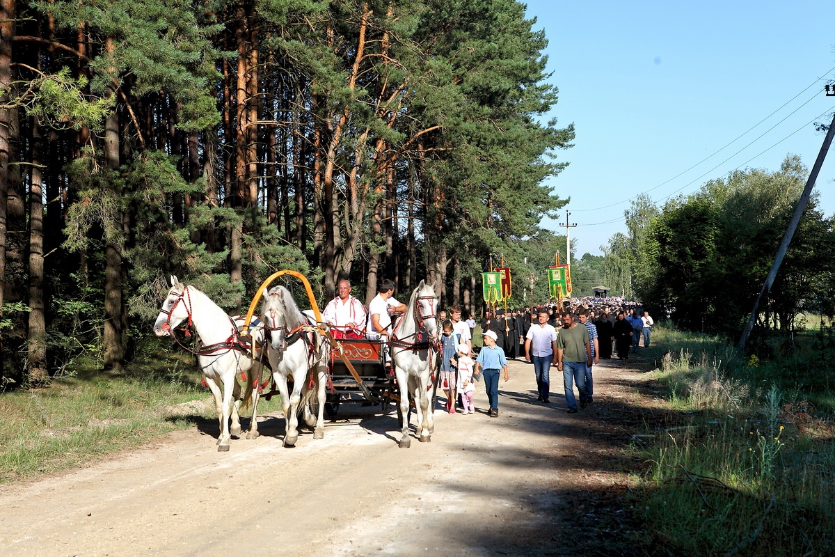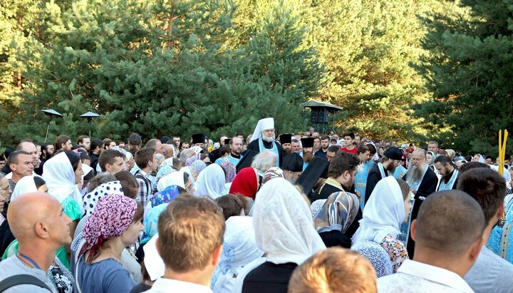 Торжественное шествие возглавил митрополит Владимир, наместник Почаевской лавры. Братия обители и паломники, которых в этом году было более пяти тысяч, прошли тем историческим путем, который в 1597 году проделали монахи Почаевского монастыря, перенося чудотворную икону из имения Анны Гойской в свою святую обитель.