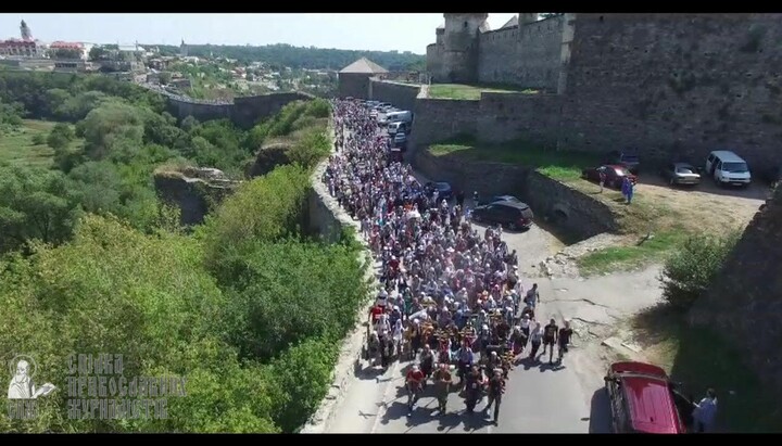 Шествие началось после праздничной Литургии из кафедрального собора Каменца-Подольского. Часть паломников присоединилась к крестному ходу в селе Должок, где митрополит Каменец-Подольский и Городокский Феодор с духовенством отслужил молебен, после чего колонна верующих отправилась дальше.