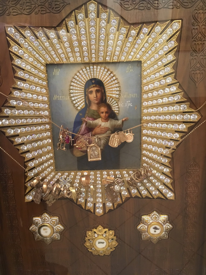 Ежедневно в 18:00 совершается акафист с водосвятным молебном и помазание елеем у святыни.