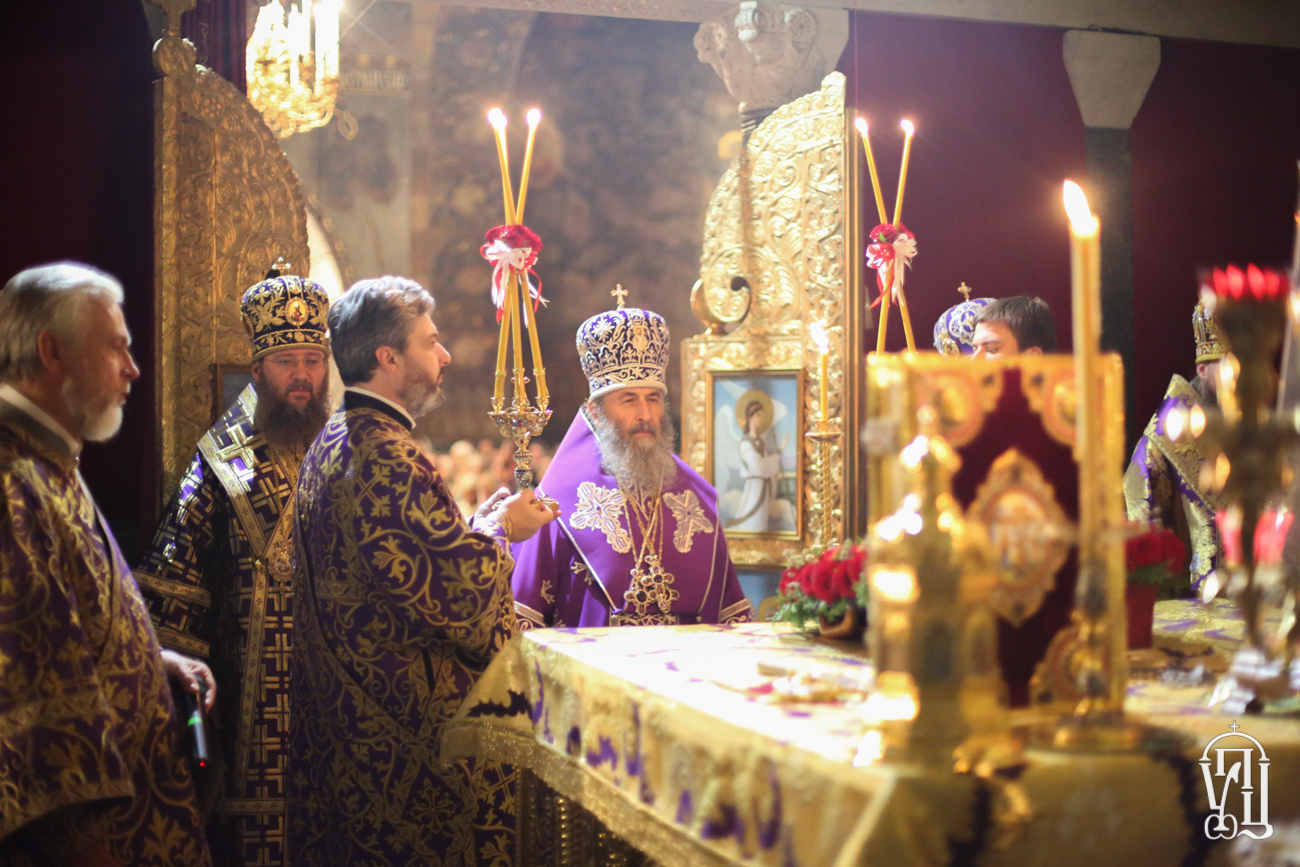 Накануне Блаженнейший Владыка возглавил всенощное бдение с чином Воздвижения Креста в Трапезном храме преподобных Антония и Феодосия Свято-Успенской Киево-Печерской лавры.