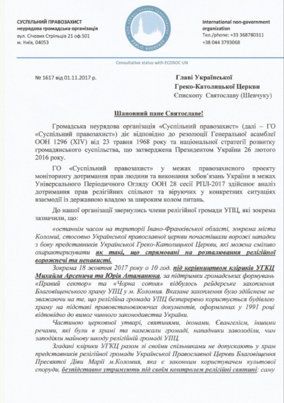 «Публичное разжигание ненависти и угрозы жизни и здоровью верующих УПЦ стало фактом, неоднократно подтвержденным средствами массовой информации. К сожалению, активистами захвата храма и лицами, непосредственно угрожающими верующим, являются клирики Украинской греко-католической церкви», – сообщают правозащитники.