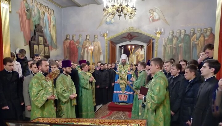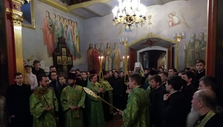 Торжества начались накануне, когда в храме в честь иконы Божией Матери «Всех скорбящих Радость» Киево-Печерской лавры была отслужена заупокойная лития по умершим преподавателям и воспитанникам КДАиС.
