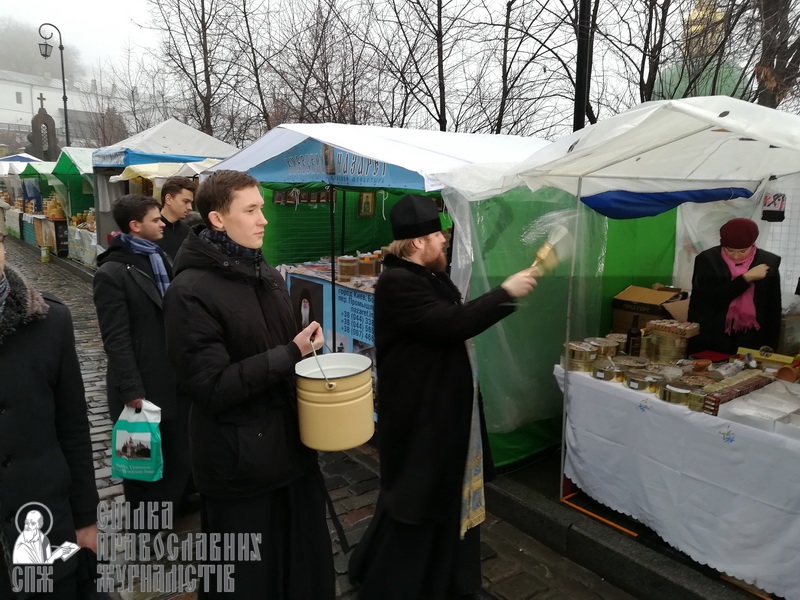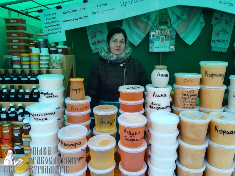 Перед открытием представитель оргкомитета иеромонах Глеб совершил молебен и поздравил участников и гостей ярмарки с началом работы, а после окропил святой водой всех присутствующих и представленную здесь продукцию.