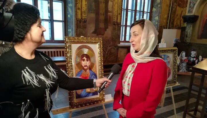 «Чувствую сейчас большой душевный трепет… наша православная святыня... такой храм... Киево-Печерская лавра – место чрезвычайно сильное, это очень важно для меня лично. Я представила 18 картин, из них икон – 15. На каждую икону в среднем уходит от полугода до 3 лет. Обязательно перед началом работы помолюсь, придерживаюсь церковных канонов, как необходимость в иконе. Сначала я сама рисую картину-образ, изучаю историю иконы, а уже потом берусь за иголку с ниткой», – рассказывает Юлия.
