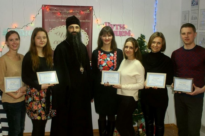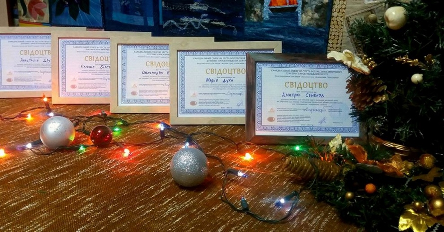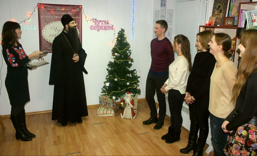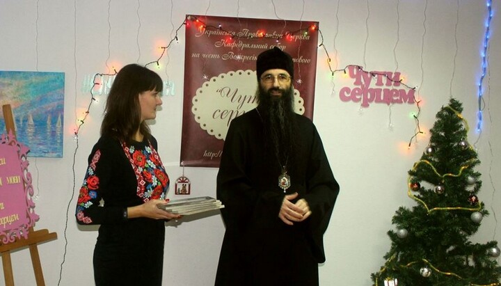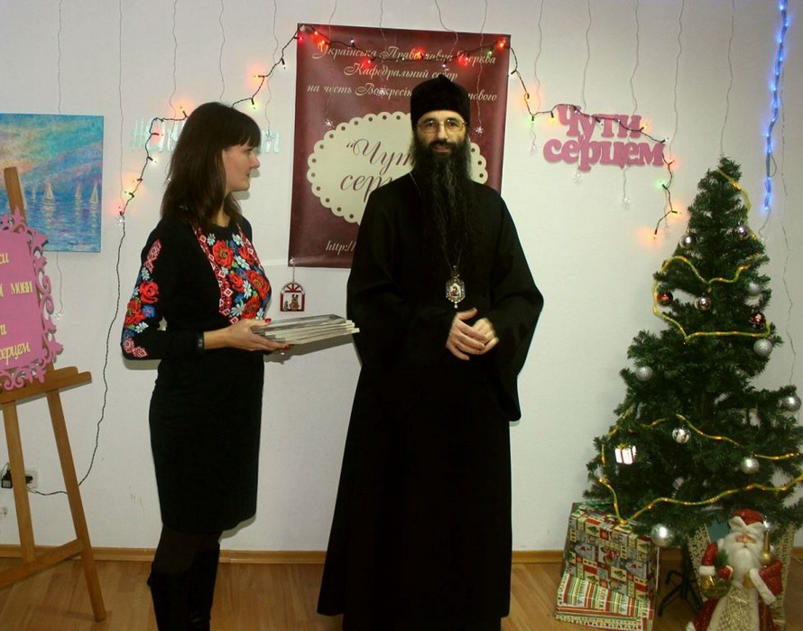 Кульминацией мероприятия в галерее «Соборная» стало вручение свидетельств. По многолетней традиции слушателям курсов жестового языка свидетельства вручает епископ Бородянский Варсонофий, викарий Киевской епархии, духовник школы. Владыка Варсонофий сказал напутствующее слово выпускникам и благословил их на добрые начинания.