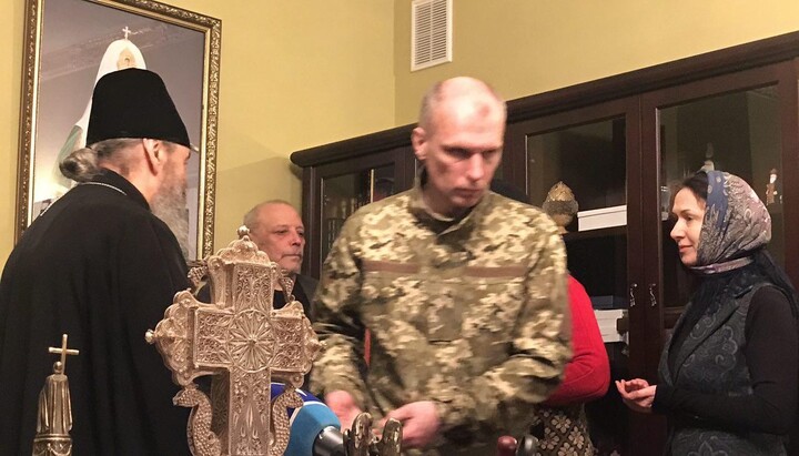 «Хочу поблагодарить Владыку, – сказал Кириченко. – Этот обмен для нас очень многое значит. Очень тяжело было оставлять там людей: они боятся, что о них могут забыть. Именно в плену я открыл для себя Православие. Очень помогает религиозная литература, которую передают родные. Именно это превращает тюрьму в подобие монастыря. Я прошу продолжать эту работу по освобождению. Мы хотим жить одной семьей».