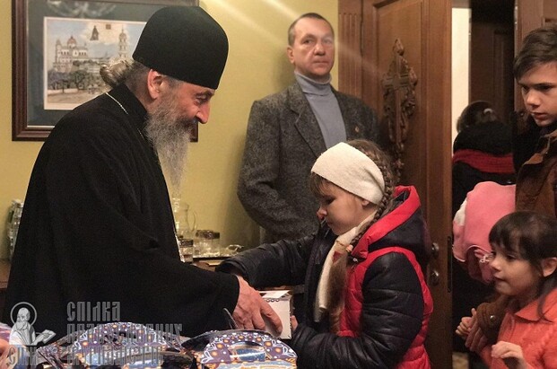 4 января в Киево-Печерской лавре Предстоятель УПЦ Блаженнейший Митрополит Киевский и всея Украины Онуфрий встретился с детьми-сиротами. Как передает корреспондент СПЖ, Владыка поздравил детей с наступающим Рождеством и вручил подарки.