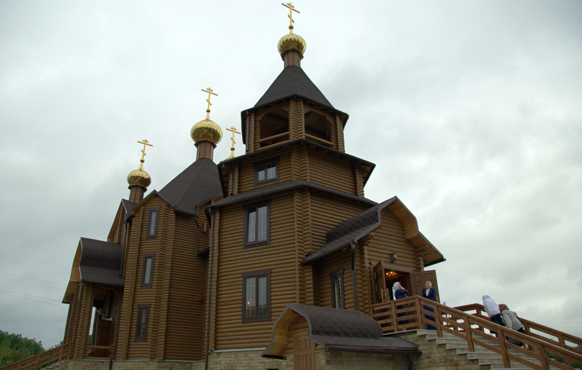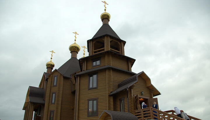 Цокольный этаж – это единственное, что уцелело от уникального 23-метрового храма из волынской сосны. Община приняла решение восстановить храм и обустроила для богослужений цокольный этаж. Планируется, что окончательно храм будет восстановлен после полного прекращения боевых действий на Донбассе.