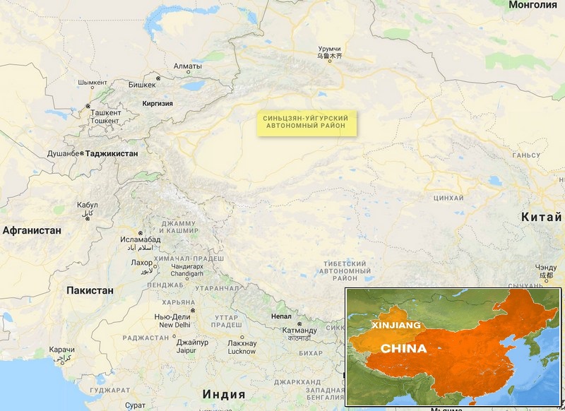 Синьцзян – крупнейшая провинция Китая, которая граничит с Монголией, РФ, Казахстаном, Киргизией, Таджикистаном, Афганистаном, Индией и Пакистаном.