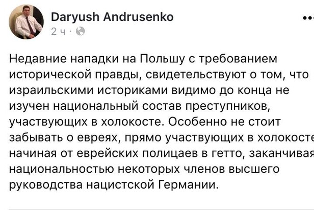 По словам Андрусенко «достаточно посмотреть на национальный состав преступников, участвовавших в Холокосте».