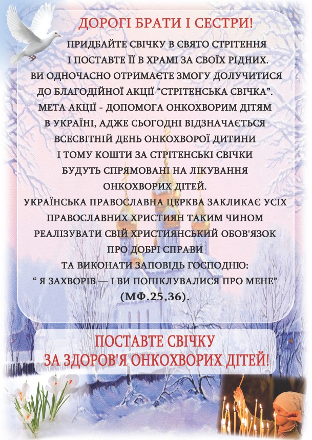 На Сретение купивший свечу в храмах УПЦ поможет онкобольным детям