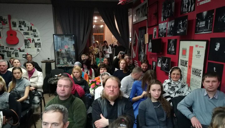Зрители концерта имели возможность встретиться с почетным гостем – поэтом и автором-исполнителем, священником-бардом Романом Барановским. Он уже не в первый раз выступает на фестивале, и здесь, в галерее, прочитал свои стихи, наполненные глубоким философским смыслом, а также спел несколько авторских песен.