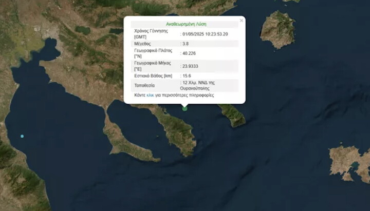 1 мая 2025 года в районе Афона произошло землетрясение магнитудой 3,8 балла по шкале Рихтера. Землетрясение было зафиксировано в районе Уранополиса, на юго-западе от этого города, вблизи Святой Горы, сообщает афонский сайт СПЖ.