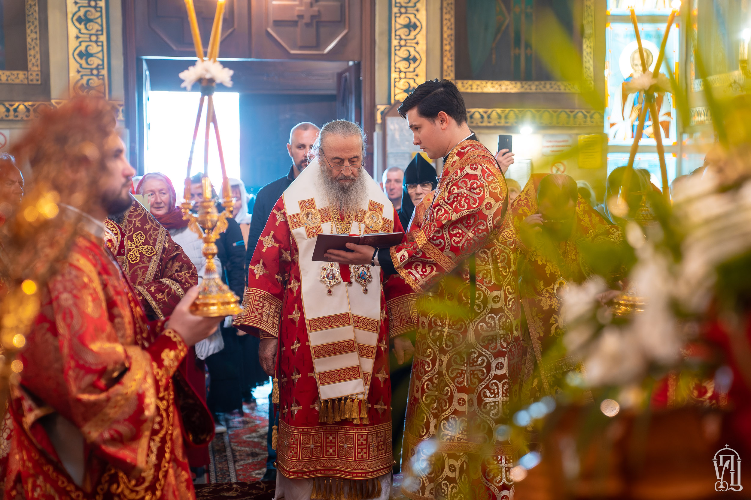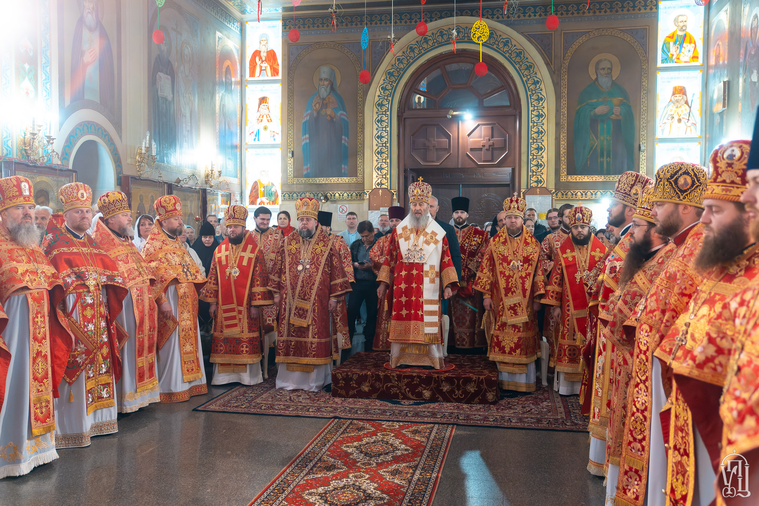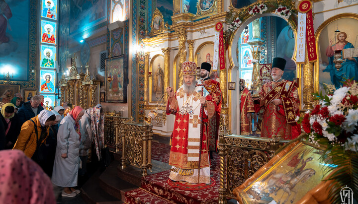 За Божественной литургией Предстоятелю УПЦ сослужили викарии Киевской епархии архиепископ Белогородский Сильвестр, архиепископ Переяслав-Хмельницкий Дионисий, епископ Ирпенский Лавр, епископ Бородянский Марк, духовенство храма и гости в священном сане.