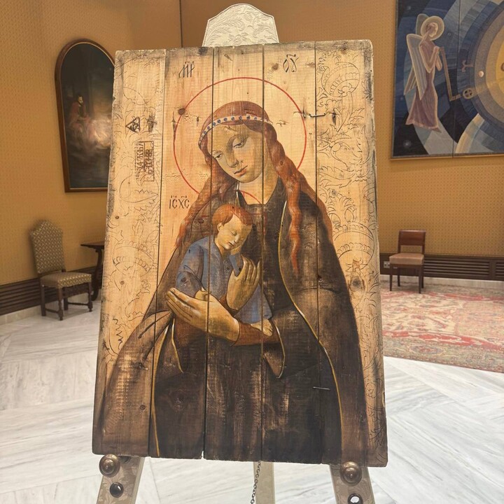 Также Зеленский подарил понтифику икону Богородицы, написанную на досках ящика из-под снарядов. Как уточнил президент, ящики были привезены из-под Изюма.