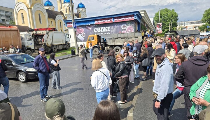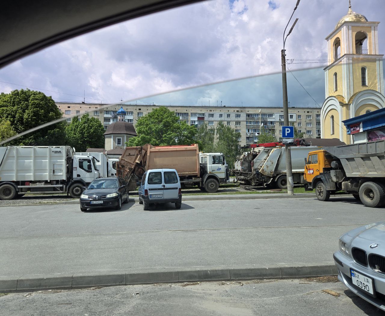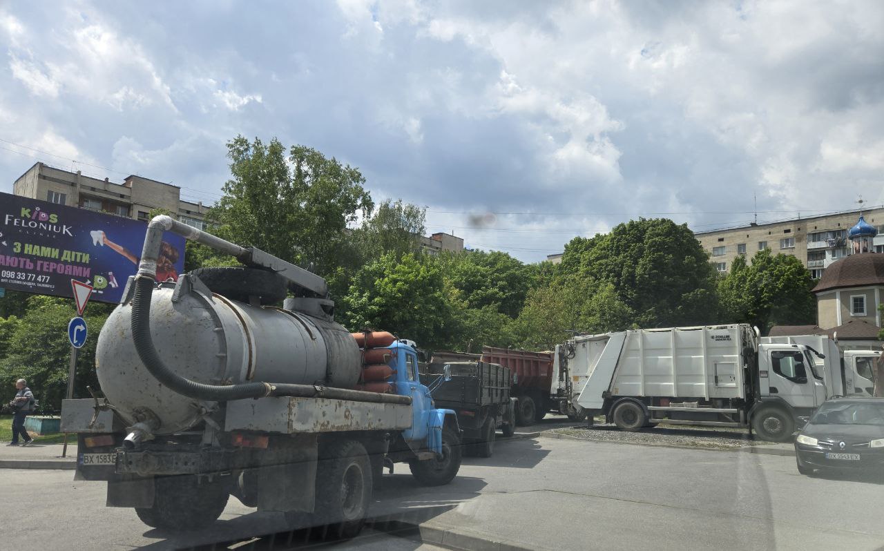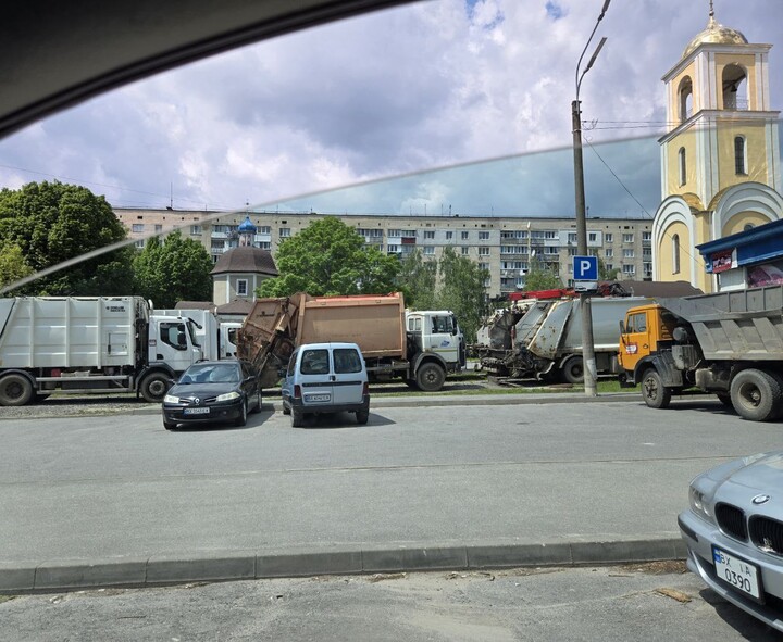 К собору, где должен служить Блаженнейший Онуфрий, пригнали мусоровозы.