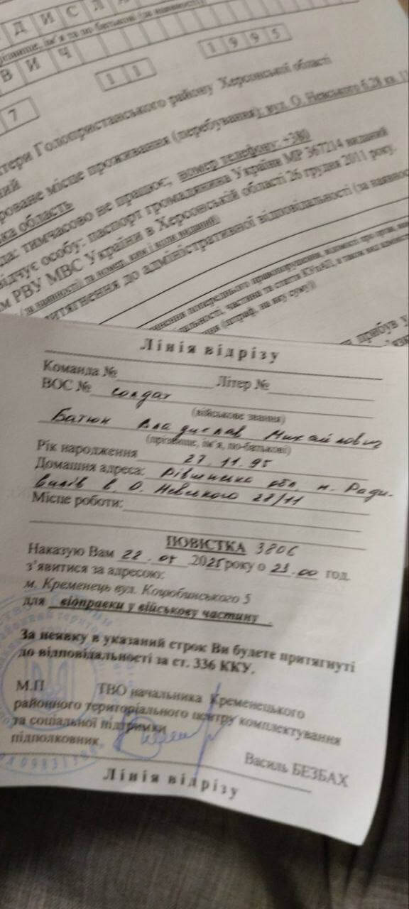 По словам очевидцев, отцу Владиславу вручили повестку с требованием явиться в ТЦК уже в 23:00 того же дня. Несмотря на то, что священник предоставил официальные документы, подтверждающие его служение настоятелем храма УПЦ, их не приняли во внимание.