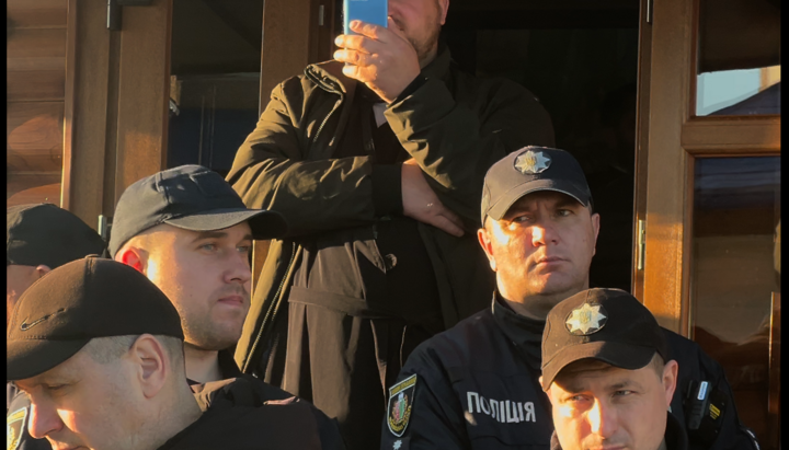 Полиция охраняет рейдеров ПЦУ, которые ворвались в Ильинский храм УПЦ в Заболотье. Фото: СПЖ Полиция охраняет рейдеров ПЦУ, которые ворвались в Ильинский храм УПЦ в Заболотье. Фото: СПЖ