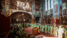 Предстоятелю сослужили архиереи и священники УПЦ.