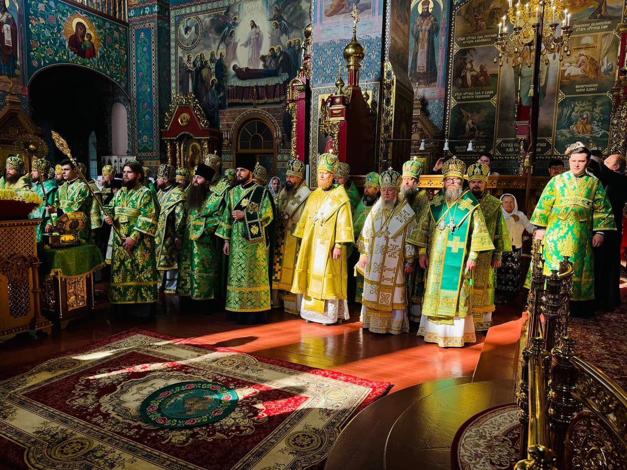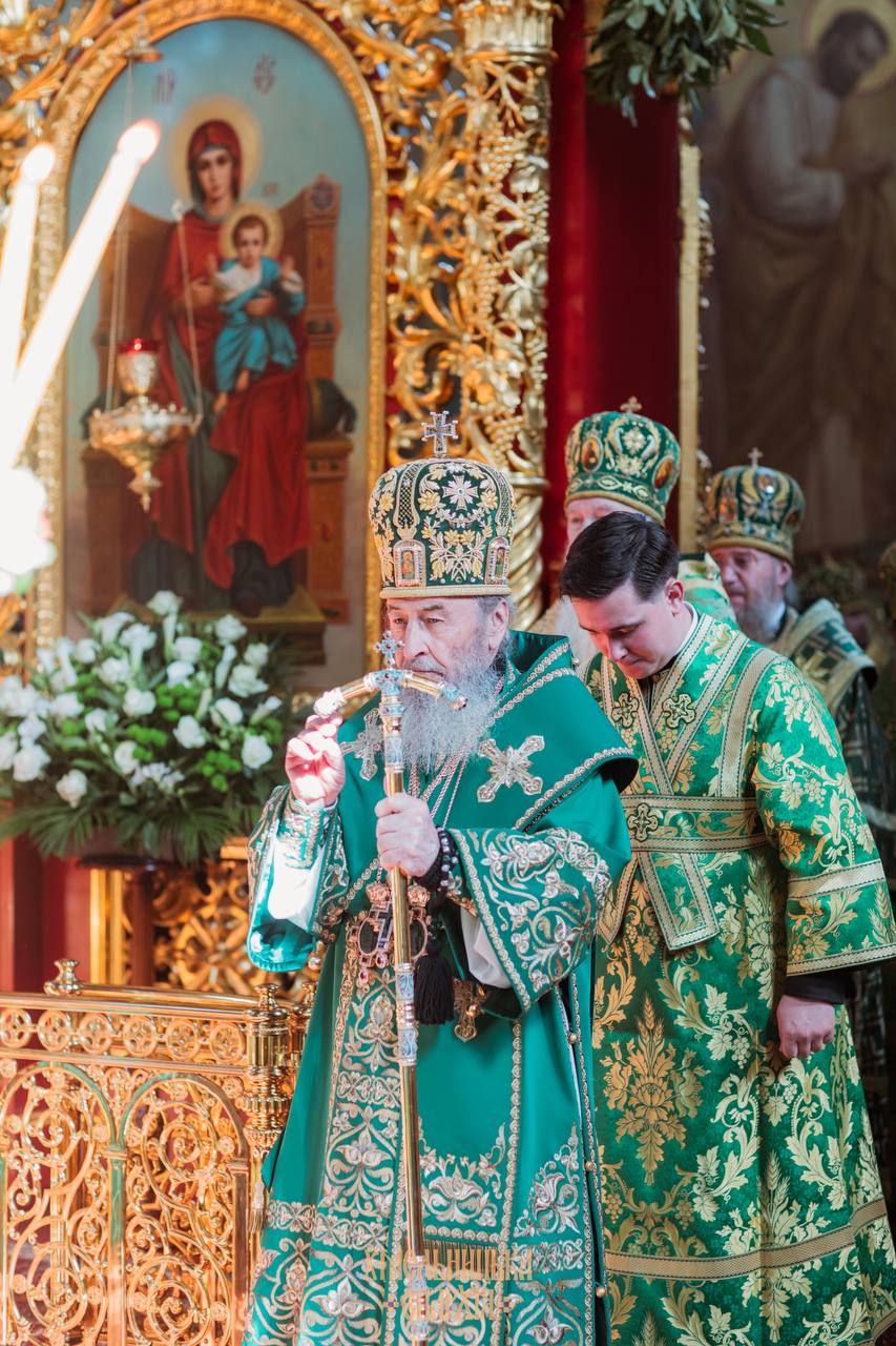За соборным богослужением Предстоятелю сослужили постоянные члены Священного Синода УПЦ, митрополиты, архиепископы и епископы Украинской Православной Церкви, духовенство обители, Киева и гости в священном сане.