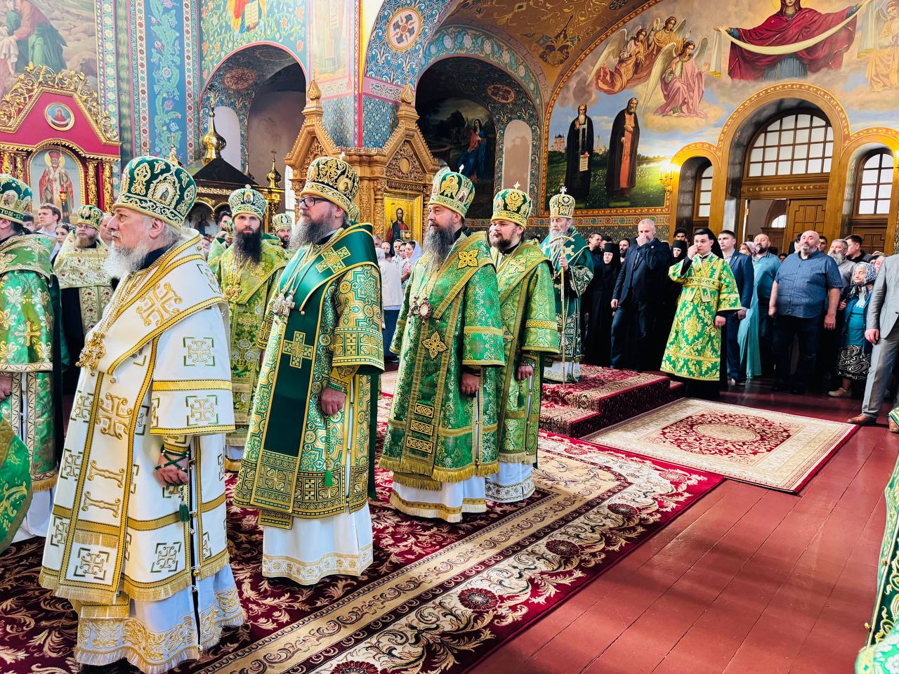 Во время службы молились монахи, духовенство из многих епархий, паломники и прихожане монастыря.