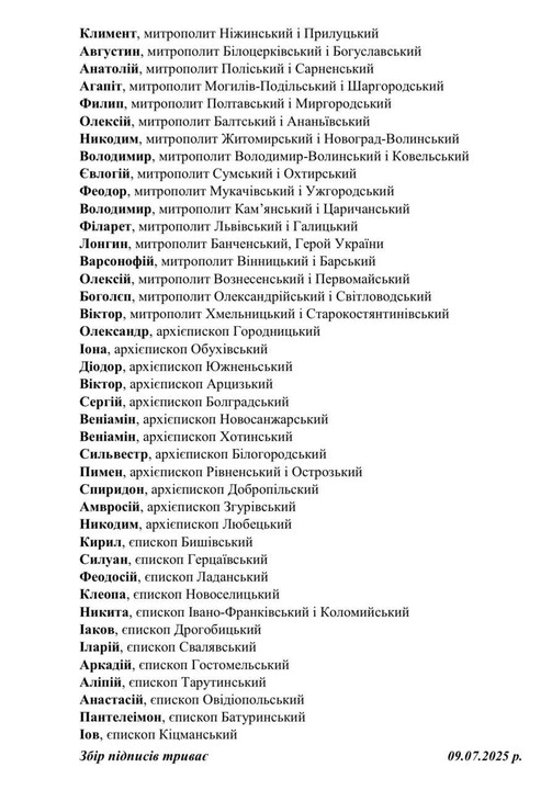 Состоянием на 9 июля обращение подписали 45 иерархов Украинской Православной Церкви.