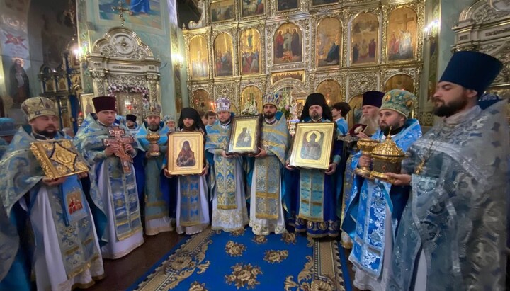 По завершении литургии митрополит Ефрем в сослужении собора духовенства Криворожской епархии совершил молебен перед чудотворной иконой Царицы Небесной и крестный ход вокруг кафедрального собора. В крестном шествии приняли участие главные святыни Криворожской епархии, хранящиеся в стенах кафедрального Спасо-Преображенского собора.