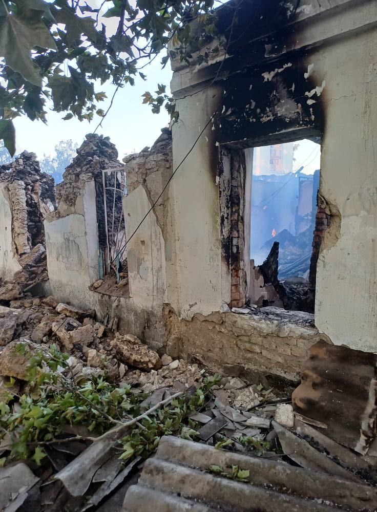 На опубликованных в Фейсбуке фото видны выбитые окна, обгоревшие стены и разрушенная крыша здания, расположенного на территории церкви.