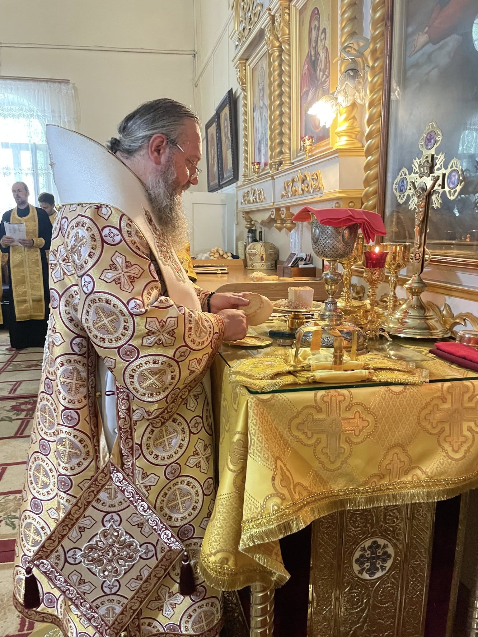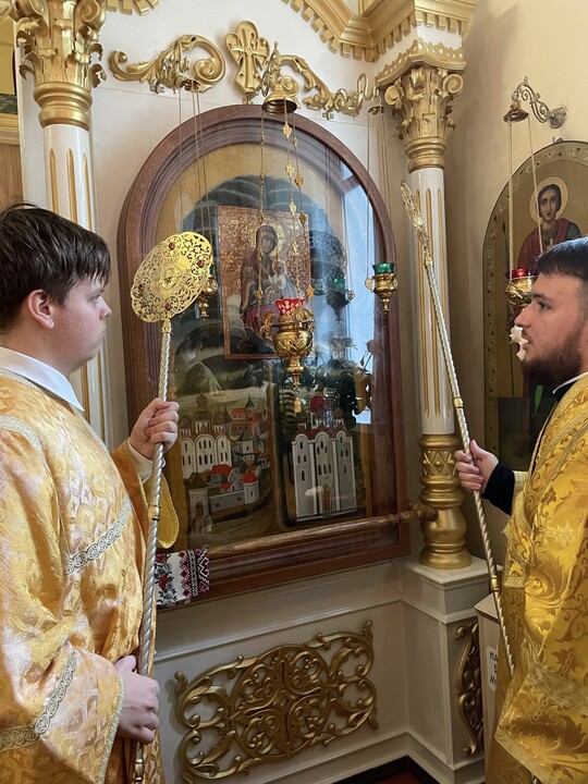 После чтения Евангелия митрополит Климент обратился к молящимся с проповедью, а в завершение богослужения совершили славословие Божией Матери перед Ее иконой «Елецкая».