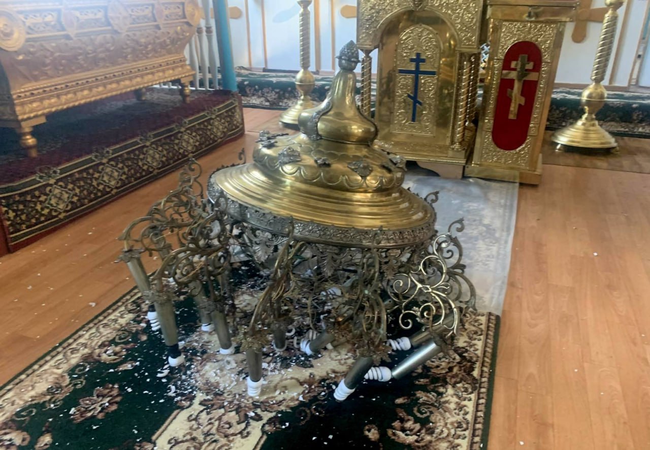 В Вознесенскому храме были выбиты окна, пострадала купольная часть здания, нарушено внешнее и внутреннее убранство храма, упало паникадило и т.д.