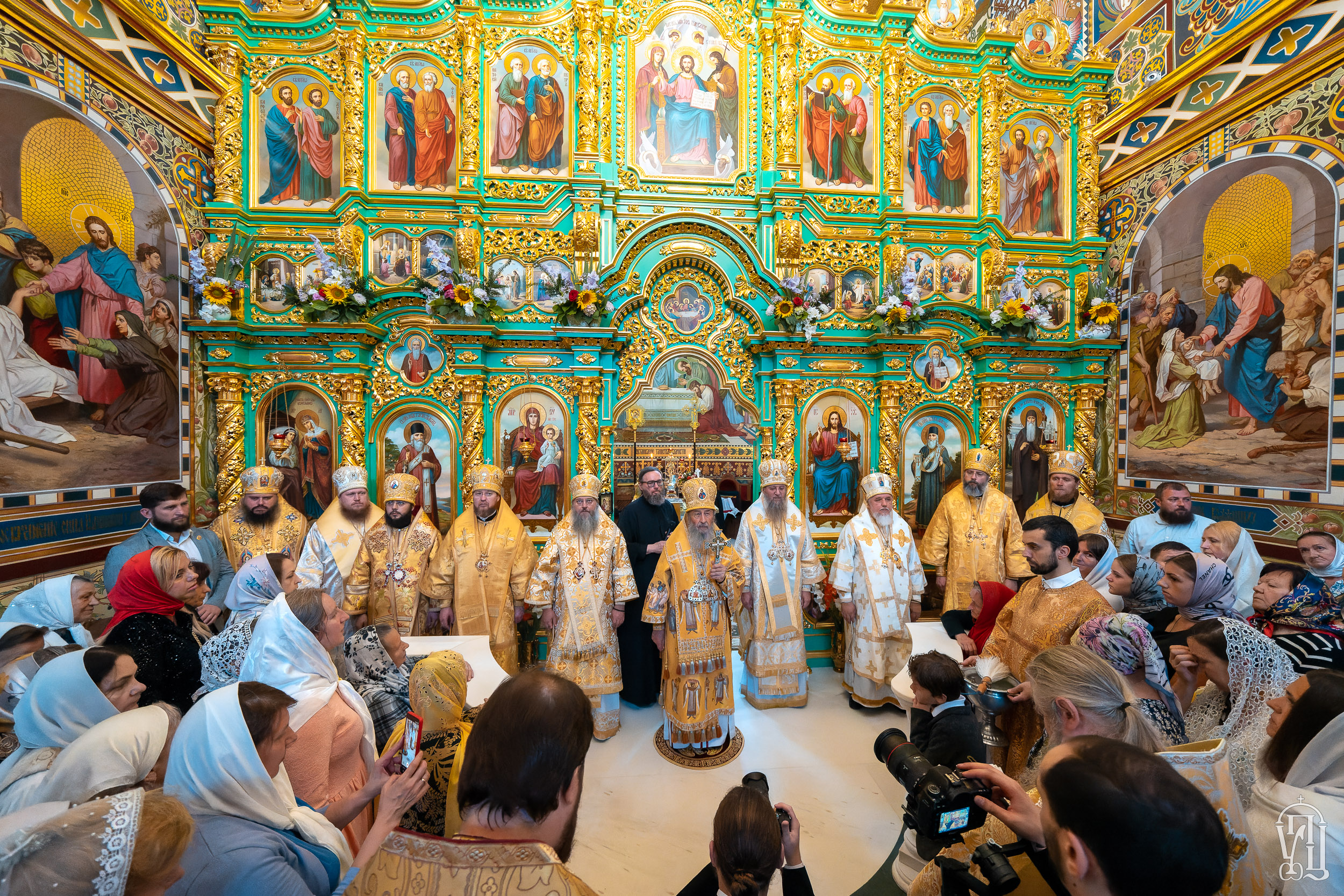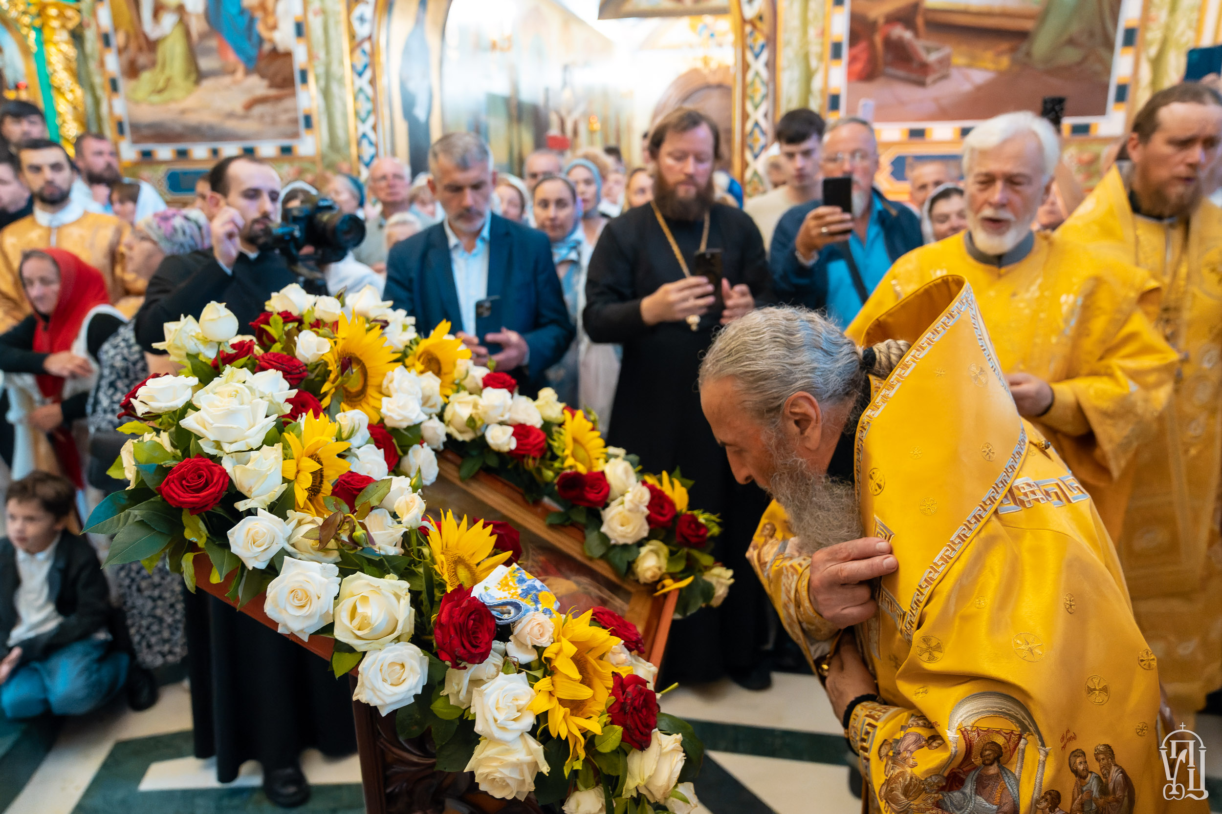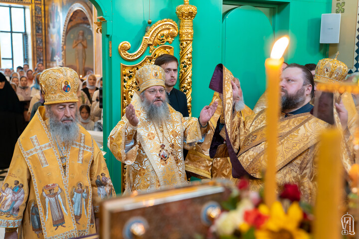 Блаженнейшему сослужили управляющий делами УПЦ митрополит Бориспольский и Броварской Антоний, председатель Информационно-просветительского отдела УПЦ митрополит Нежинский и Прилукский Климент, а также митрополиты: Васильковский Иоасаф, Кировоградский и Новомиргородский Николай, Роменский и Буринский Тихон; архиепископы: Переяслав-Хмельницкий Дионисий, Вишневский Спиридон; епископы: Ирпенский Лавр, Бородянский Марк, Камень-Каширский Афанасий, Бышевский Кирилл, Ладанский Феодосий, Гостомельский Аркадий, Нововоронцовский Серафим, а также братия и гости обители в священном сане во главе с духовником Лавры архимандритом Антонием.