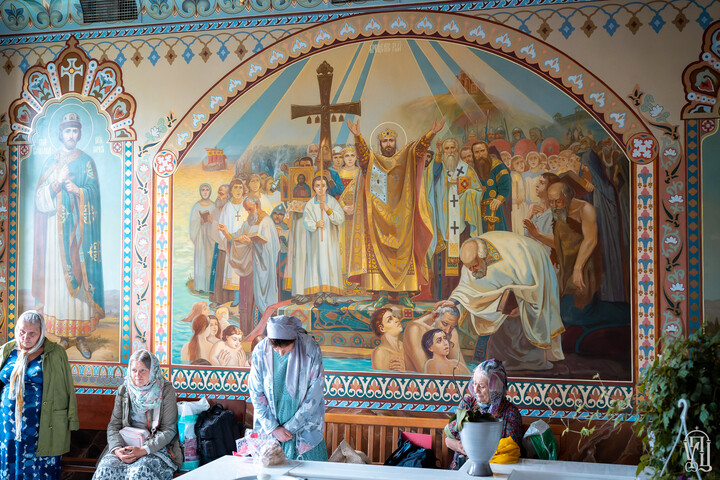 После чтения Евангелия Митрополит Онуфрий напомнил историю Крещения Киевской Руси равноапостольным князем, которого народ прозвал Владимиром Красным Солнышком из-за духовной красоты его души, благодаря добрым делам после его обращения в православную веру.