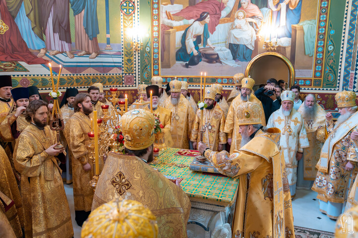 Накануне Блаженнейший возглавил всенощное бдение в этом же храме.